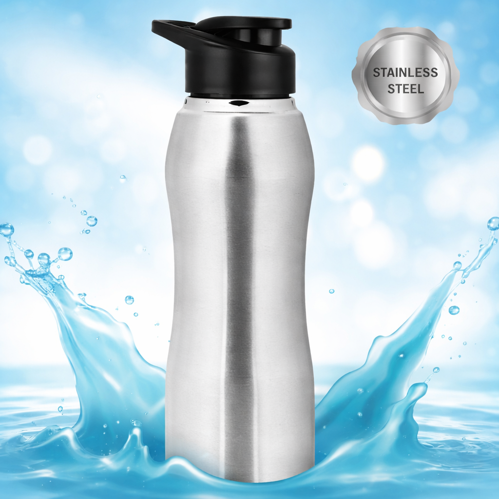 Elegant 750ml curvy stainless steel bottle with sleek design. Durable, leak-proof, lightweight, and perfect for travel, gym, office, and everyday hydration. 💧Min. Order: 100
